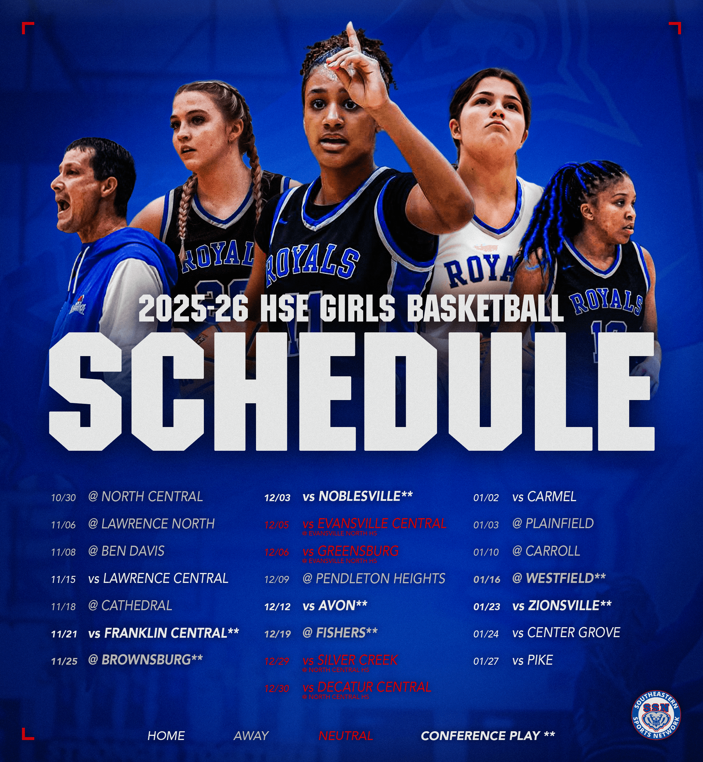 As part of my work for HSE Athletics, I have been responsible for making an Instagram schedule graphic for all athletics teams prior to the start of their season. These schedules are meant to be visually appealing, but also an early storytelling piece to set the scene for the season. On our Southeastern Sports Network page, we keep these pinned to the top, allowing users to easily come back to look at upcoming events. Take a look at some favorites!